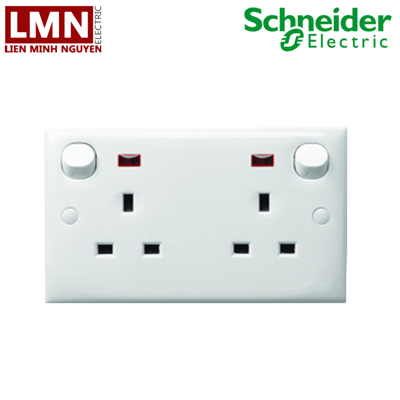 BỘ Ổ CẮM ĐÔI 3 CHẤU 13A CÓ CÔNG TẮC ĐÈN BÁO KIỂU ANH E25N_WE E30 SCHNEIDER