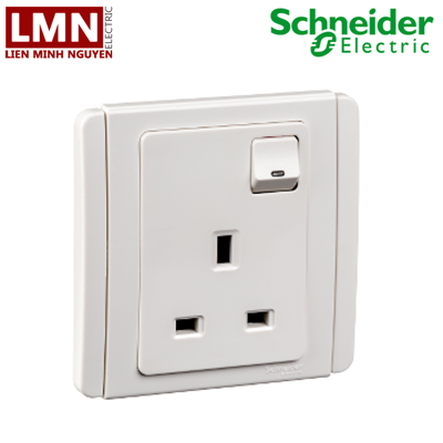 Bộ ổ cắm đơn 3 chấu 13A có công tắc đèn LED kiểu Anh màu trắng E3015D_EWWW_G19 Neo Schneider