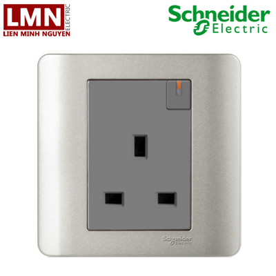Bộ ổ cắm đơn 3 chấu 13A có công tắc kiểu anh màu bạc E8415_SA_G19 Zencelo Schneider